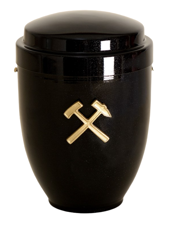 First we take the urn out of the press (cold drawn metal) where it gets its shape, then it is cleaned of oil and grease, sanded, painted and varnished with high quality materials, which are also used in the automotive industry. The urns are checked the next day, polished if necessary and fitted with high-quality brass decorations (crosses, flowers, hands ...) during assembly.
