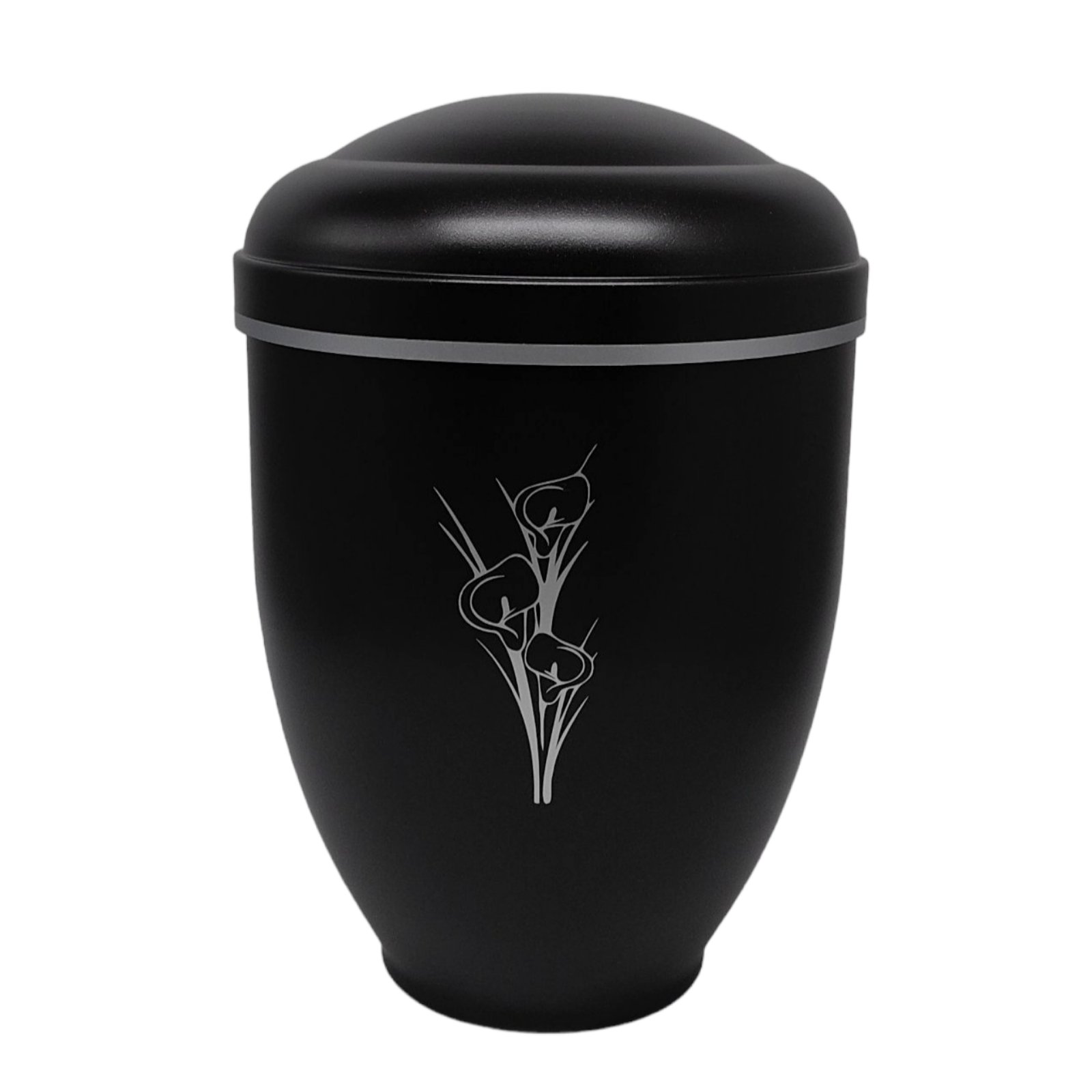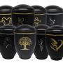 First we take the urn out of the press (cold drawn metal) where it gets its shape, then it is cleaned of oil and grease, sanded, painted and varnished with high quality materials, which are also used in the automotive industry. The urns are checked the next day, polished if necessary and fitted with high-quality brass decorations (crosses, flowers, hands ...) during assembly.