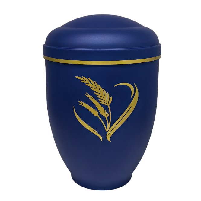 First we take the urn out of the press (cold drawn metal) where it gets its shape, then it is cleaned of oil and grease, sanded, painted and varnished with high quality materials, which are also used in the automotive industry. The urns are checked the next day, polished if necessary and fitted with high-quality brass decorations (crosses, flowers, hands ...) during assembly.