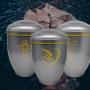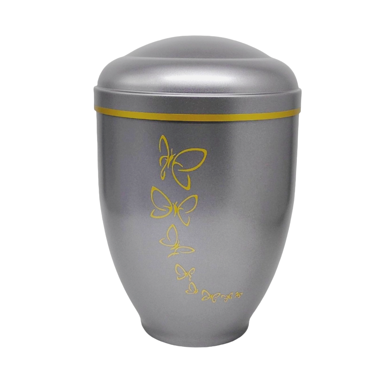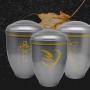 First we take the urn out of the press (cold drawn metal) where it gets its shape, then it is cleaned of oil and grease, sanded, painted and varnished with high quality materials, which are also used in the automotive industry. The urns are checked the next day, polished if necessary and fitted with high-quality brass decorations (crosses, flowers, hands ...) during assembly.