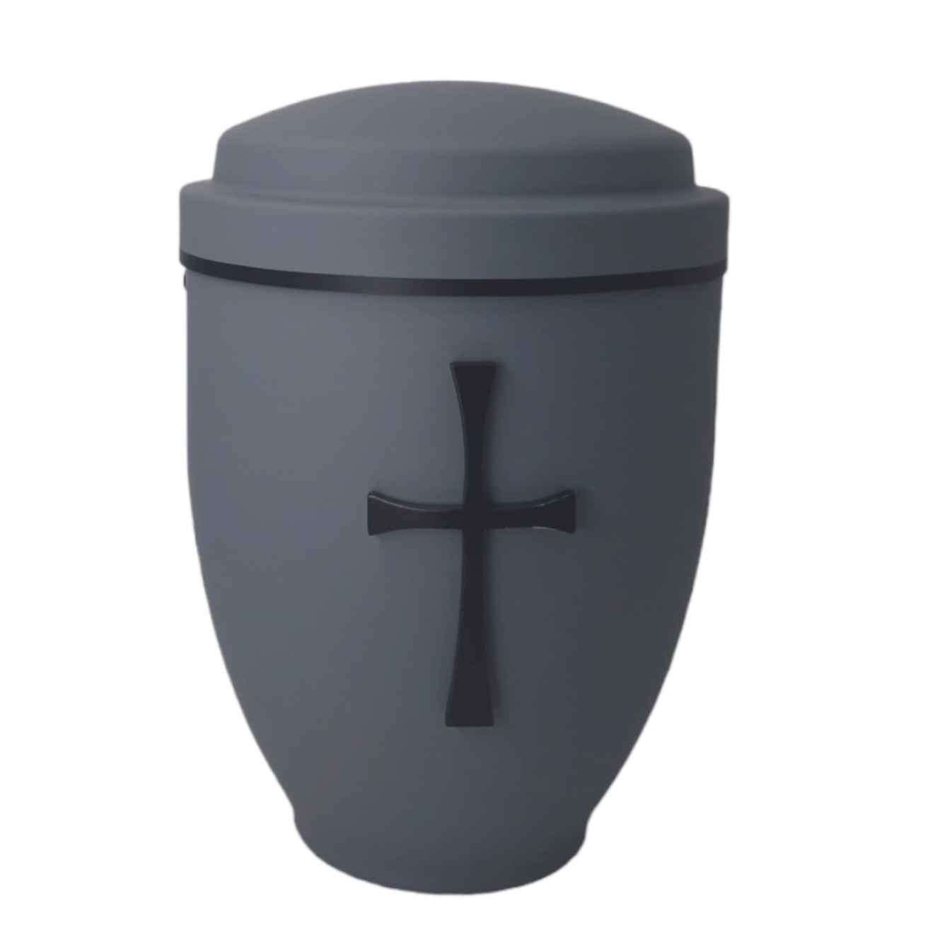First we take the urn out of the press (cold drawn metal) where it gets its shape, then it is cleaned of oil and grease, sanded, painted and varnished with high quality materials, which are also used in the automotive industry. The urns are checked the next day, polished if necessary and fitted with high-quality brass decorations (crosses, flowers, hands ...) during assembly.