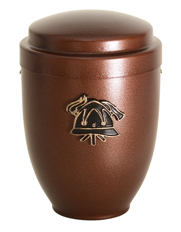 First we take the urn out of the press (cold drawn metal) where it gets its shape, then it is cleaned of oil and grease, sanded, painted and varnished with high quality materials, which are also used in the automotive industry. The urns are checked the next day, polished if necessary and fitted with high-quality brass decorations (crosses, flowers, hands ...) during assembly.